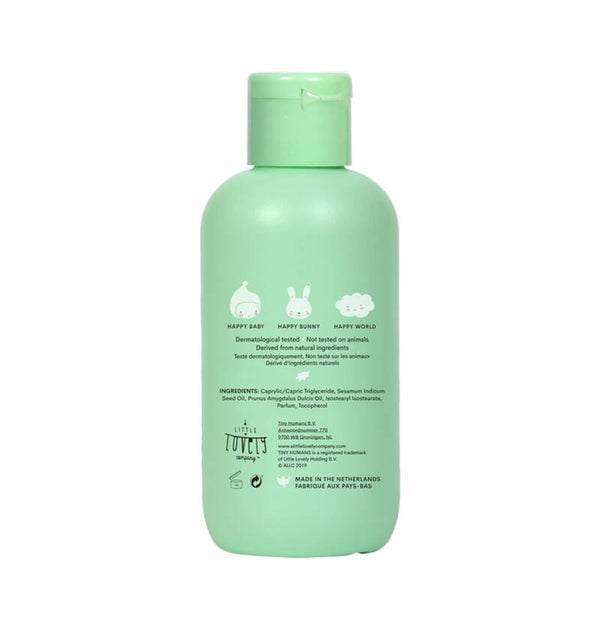 De olie is 100% plantaardig en verzorgt en hydrateert de gevoelige babyhuid op een zachte manier.
