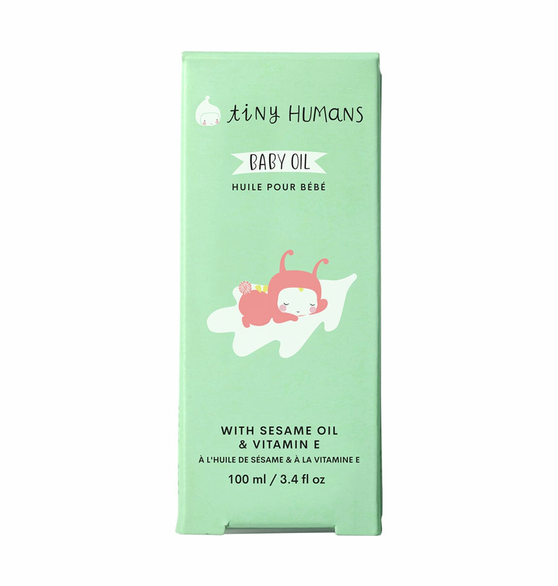 Tiny Humans Babyolie is een zeer milde, natuurlijke babyolie en rijk aan vitamine E.