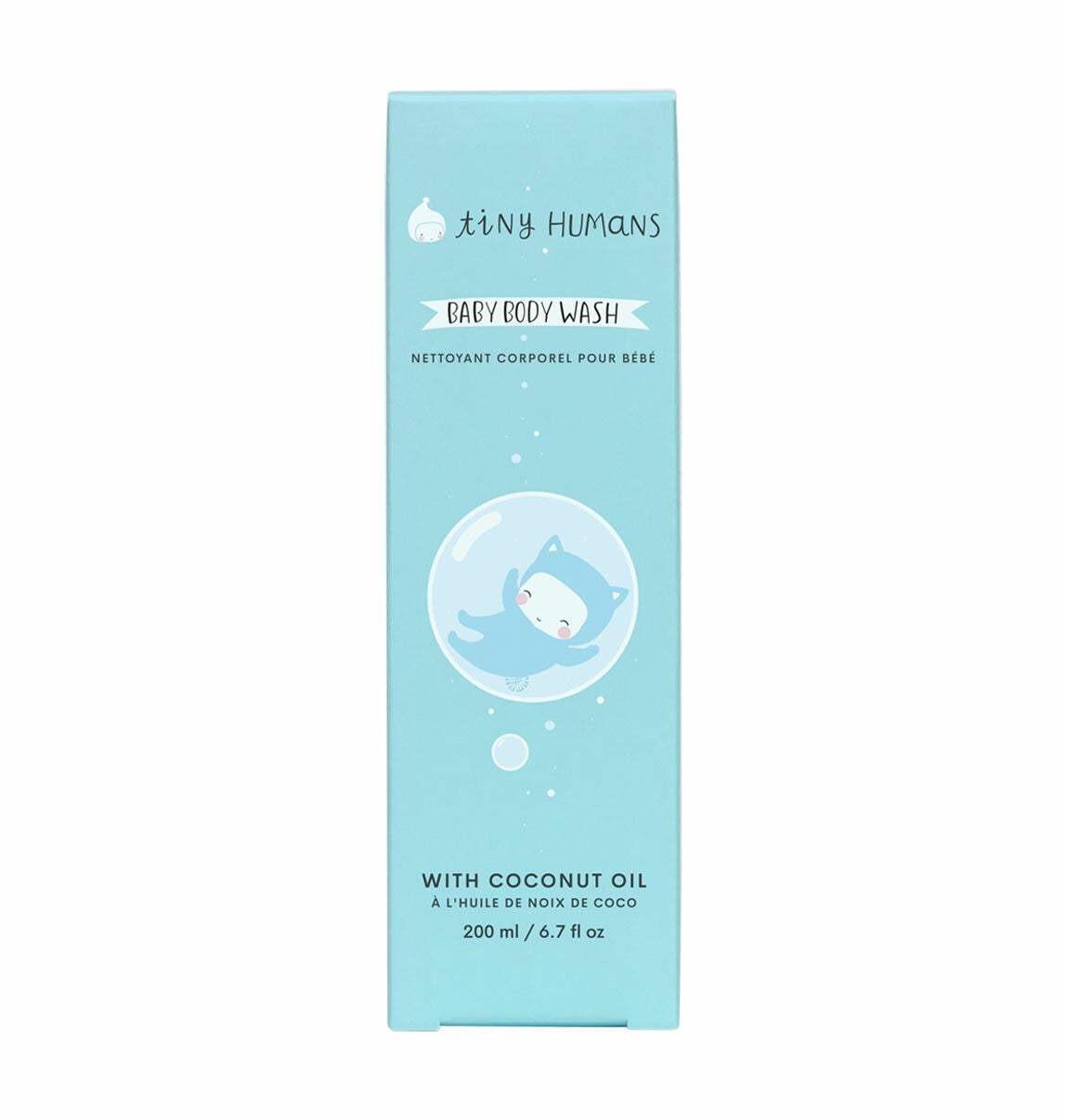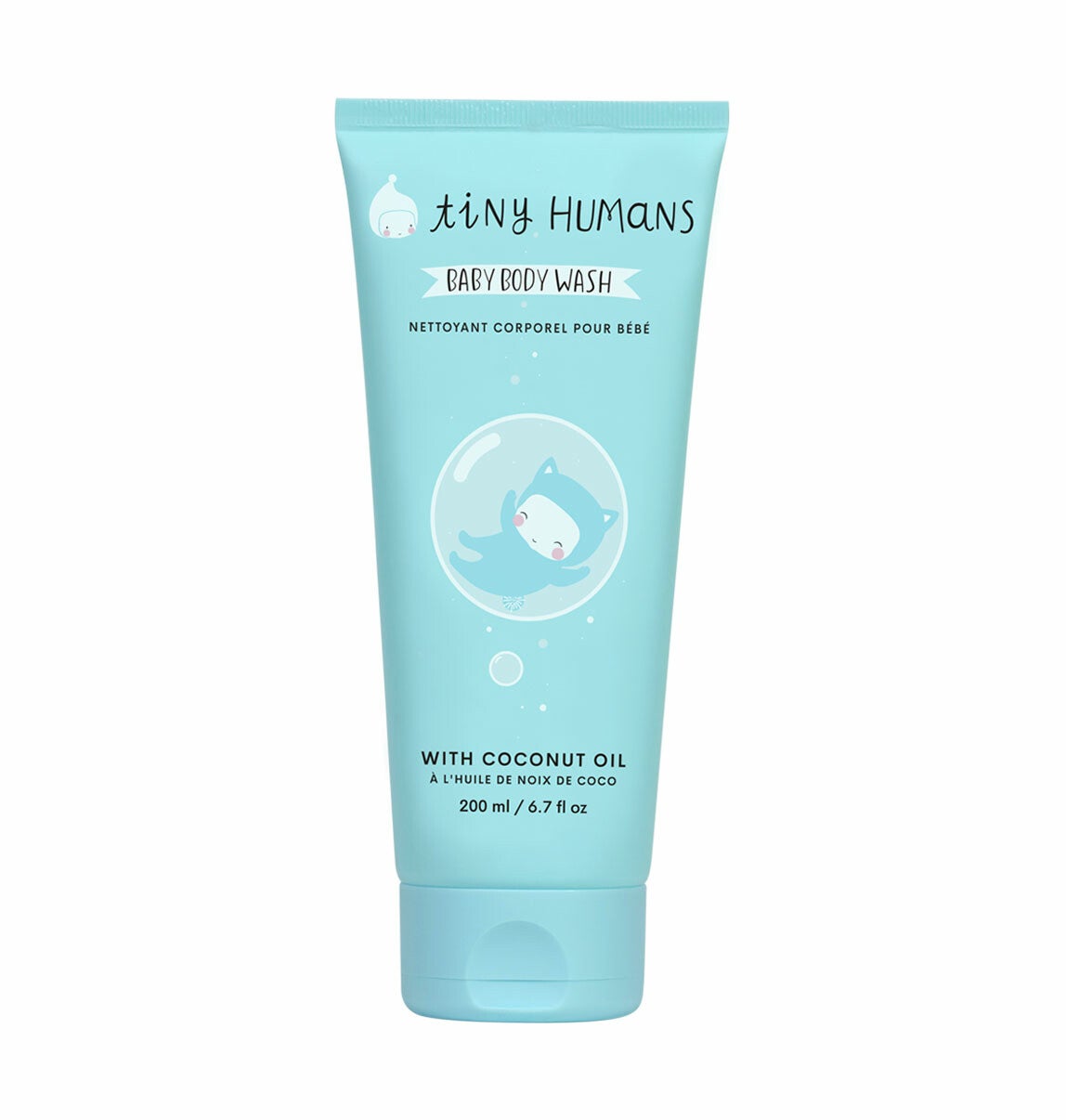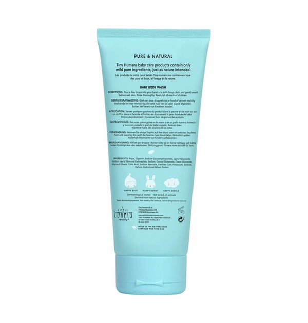 Tiny Humans Baby Bodywash is een milde, natuurlijke body wash met kokosolie en tarweproteïne en heeft een subtiele babygeur.