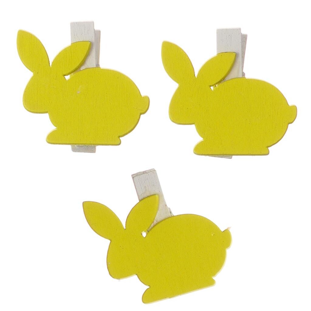 De knijper is wit en heeft een geel konijntje als decoratie.